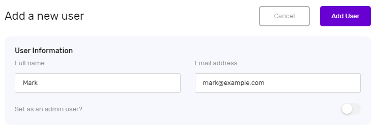 To create a new user within this customer, press the ‘Add a new user’ button.