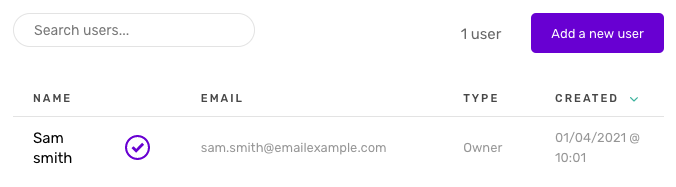 Click ‘Users’ from the customer menu to see a list of the users at this customer.