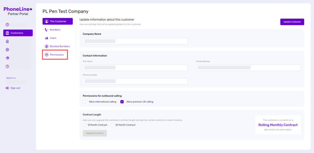 Log in to the PhoneLine+ Partner Portal and click on ‘Customers’:
